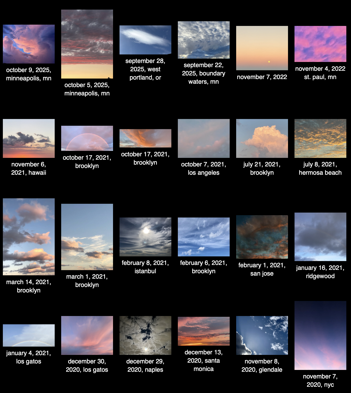 These are some pictures of the sky, taken by Nazlı Ercan over the last (approximately) 10 years [↓]: