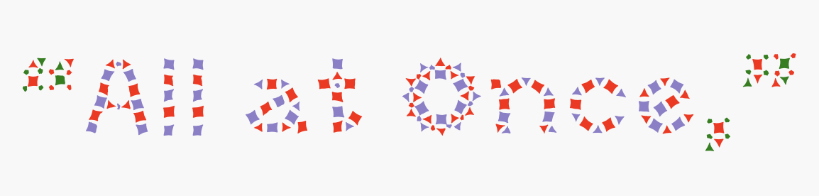 Nazlı will share some of her design work in class. She is joined by two other designers cut from similar cloth: Bryce Wilner and Matt Wolff. Bryce is an independent designer in New York whose work spans books, fonts, video, writing, teaching, and websites. He is also a publisher of extraordinary electronic projects through https://screen-door.net. You can read a bit about Bryce here from a previous Princeton class visit. Anyway, here is one of Bryce's fonts used to set a small fragment of his writing [↓] which I like very much:
